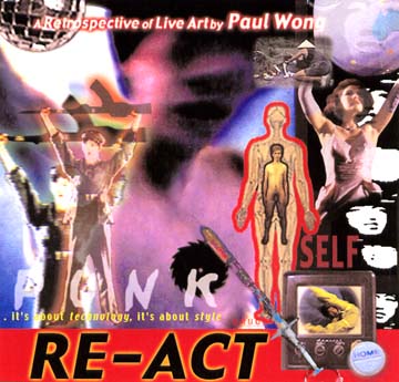Re-Act cd-romReleased in March 2001, Re-Act is an interactive CD Rom document of video performances by Paul Wong. Originally produced by Video In for Live At The End of The Century Performance Art Festival Vancouver in November 1999. Selected works from 1975-1999 are represented in this first retrospective of his live art projects.